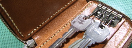 キャメルの牛革でファスナーキーケースを作りました。 ステッチは相性の良いベージュを使いました。 内装の両サイドにカードポケットを付けました。 Suicaを入れてもいいしカードキーも入りリます。 >>カードも入るキャメルのファスナーキーケース ベージュステッチ ¥12,800 (税込)