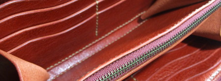シボありの赤でファスナーロングウォレットを作りました。 ステッチ糸はベージュステッチを使ってます。 多めにオイルを含んでおり触り心地もよく程よい柔らかさです。 センターにコインポケット、お札は左右のセンターコインポケット […] >>シボあり赤のファスナーロングウォレット ベージュステッチ ¥45,000 (税込)