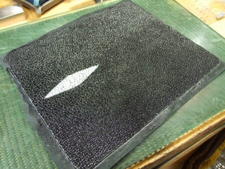 ネイビーの革で作った シンプルなパスケースです。 ステッチ糸ベージュを使いました。 カードが取り出しやすい様に下に切り込みをいれ 親指で押すと出てくる設計にしました。 更に左側にDカンを付けて紐などを足してバッグなどに […] >>ネイビーのパスケース ¥3,400 (税込)