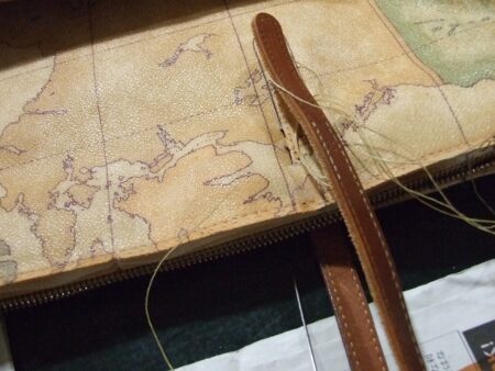 焦げ茶のファスナーロングウォレット ベージュステッチ