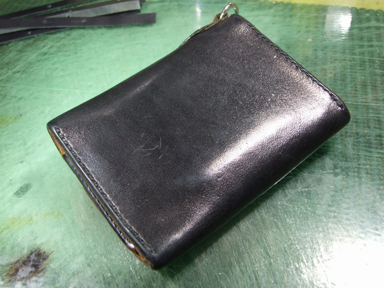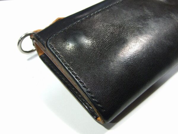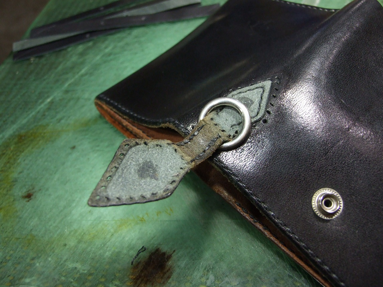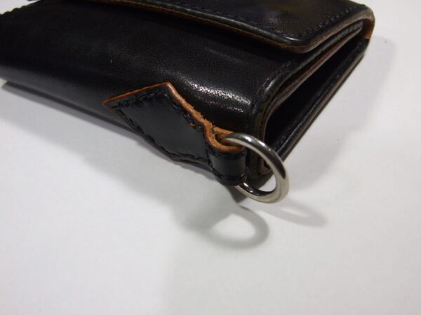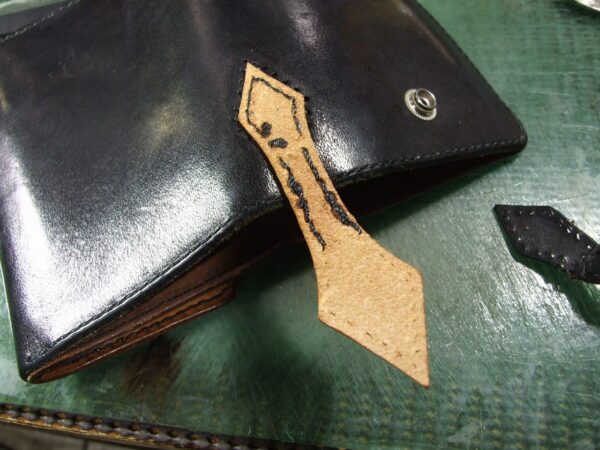ウォレット修理 2026年3月25日 sin 6年前に作らせて頂いたウォレットの修理です。 ウォレットチェーンを装着する部分にへたりが出てきたので茶芯の革で作り直しました。 あとファスナーの取手7本です。