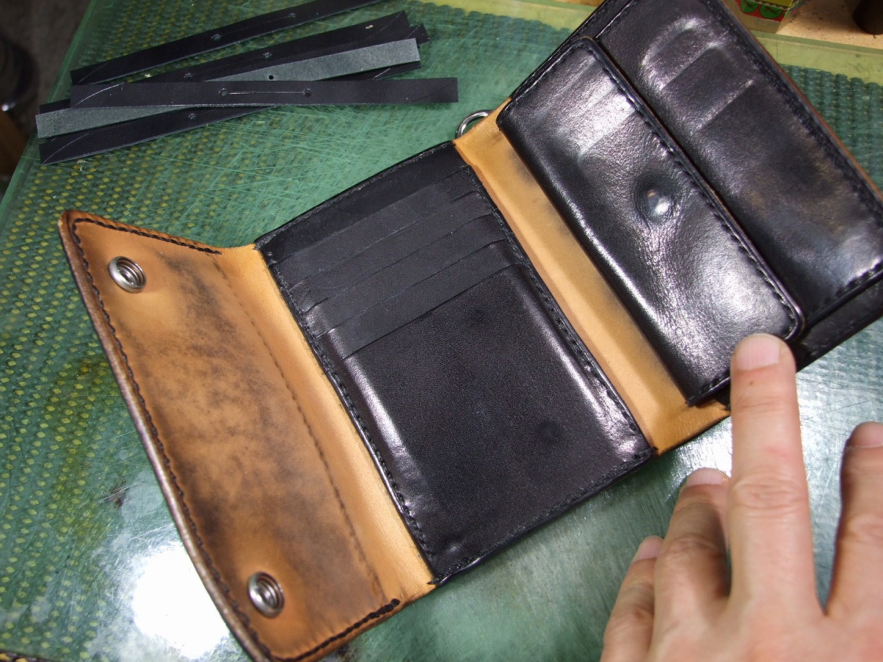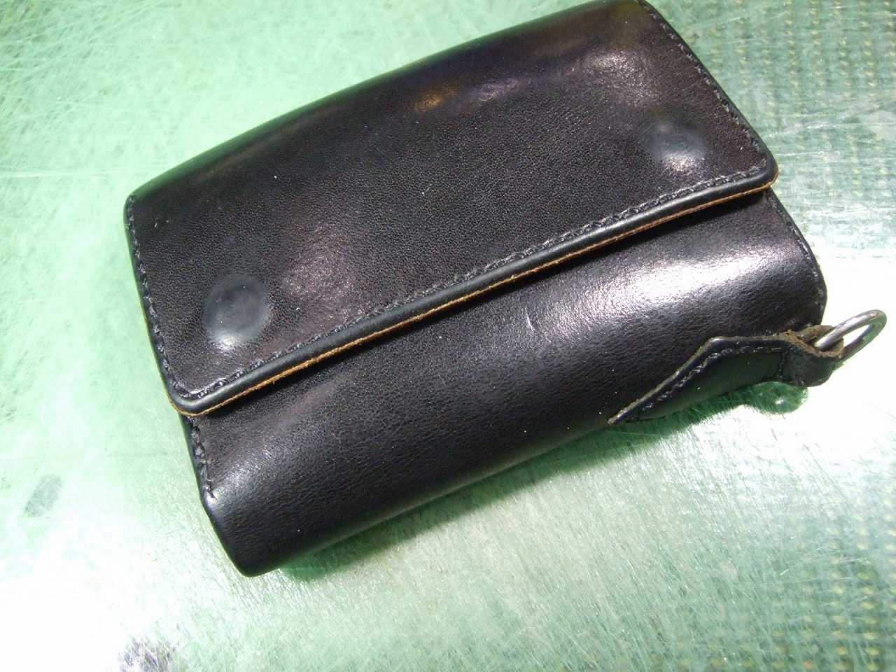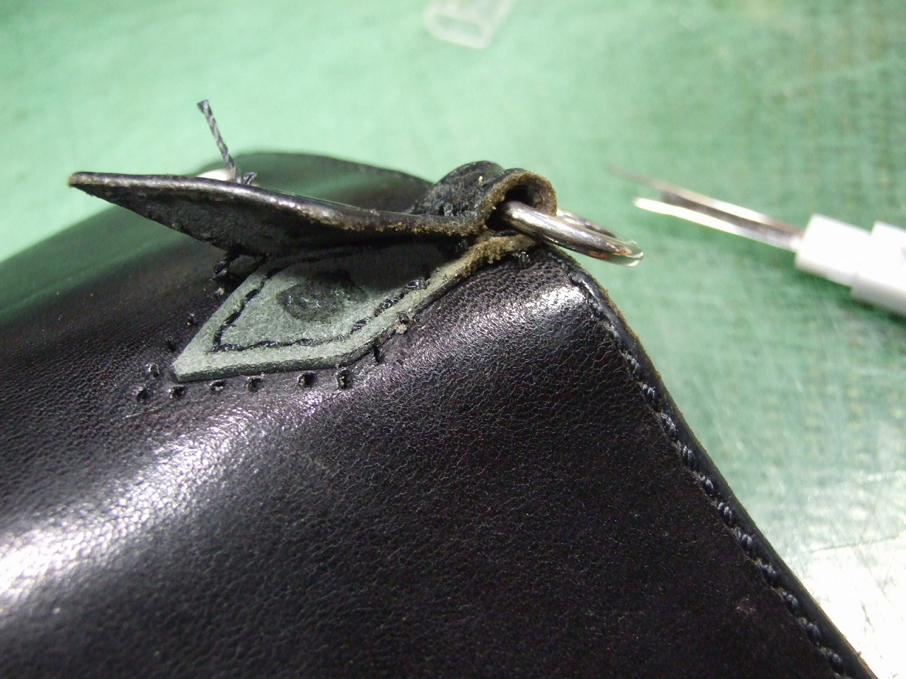 ウォレット修理 2026年3月25日 sin 6年前に作らせて頂いたウォレットの修理です。 ウォレットチェーンを装着する部分にへたりが出てきたので茶芯の革で作り直しました。 あとファスナーの取手7本です。