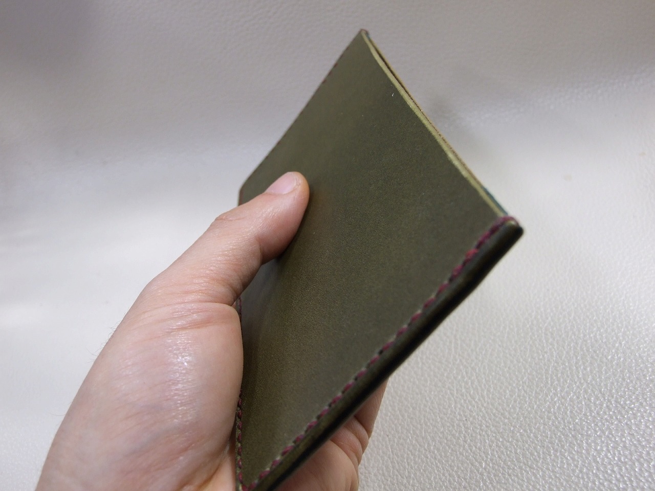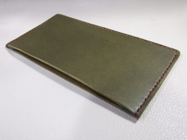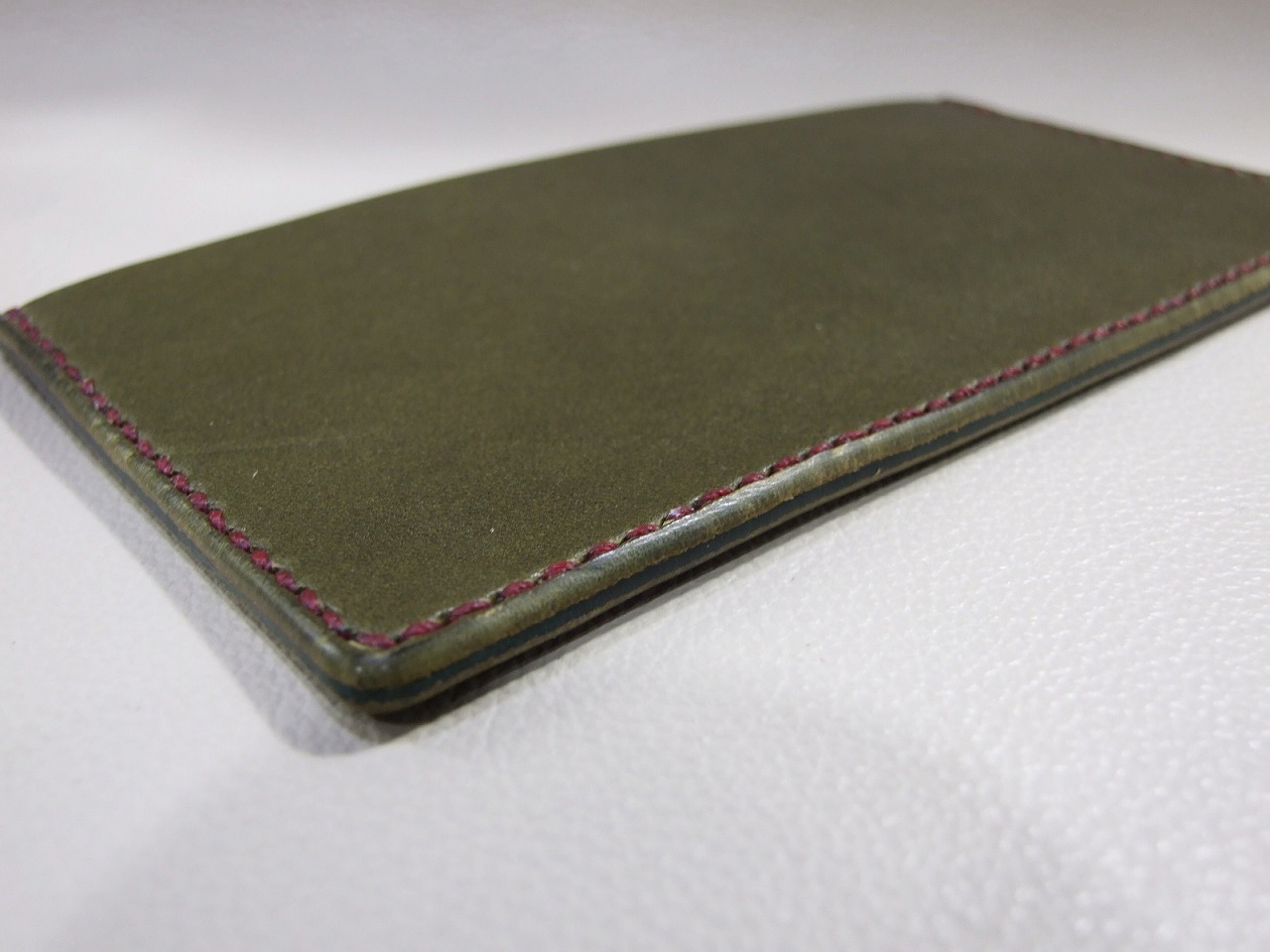オーダー札入れ 2025年12月7日 sin オーダー頂いた札入れです。 縦85mm横17mmでオイルプルアップのオリーブ1.5mm厚で作りました。 プエブロレザーのグリーン1mm厚で仕切りも入ってます。