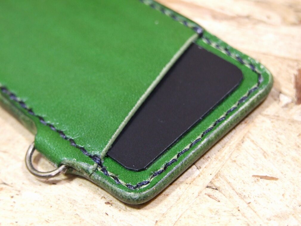 シャーロックカードキーケース・ICカード(オリジナルサイズ)ルガトパロットグリーン 2026年1月9日 sin creema経由でご要望頂いたシャーロックカードキーケースです。 ルガトパロットグリーンにネイビーステッチで仕上げました。