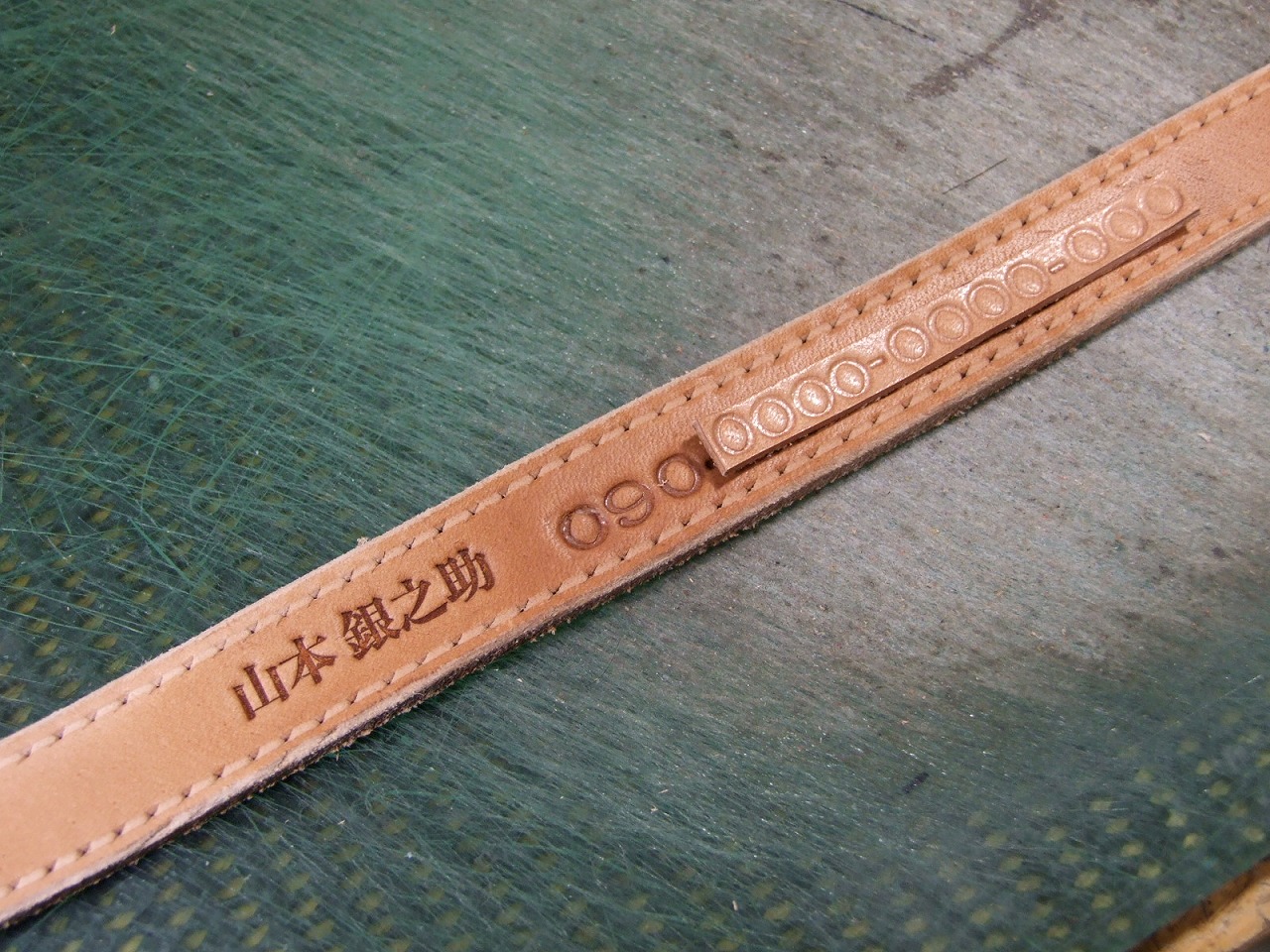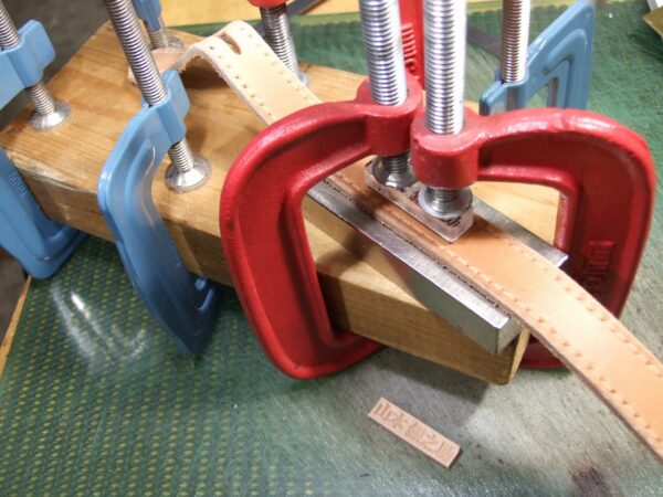 刻印打ったので乾いたらエンジステッチで縫います。