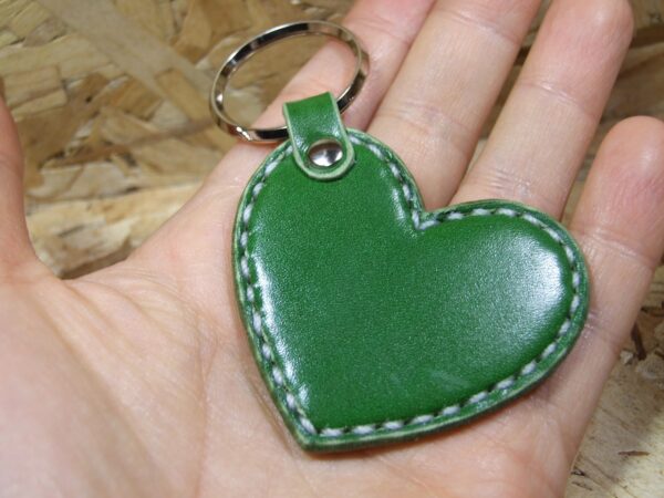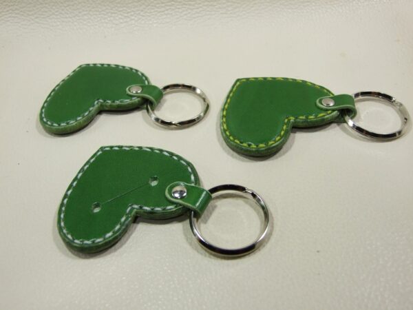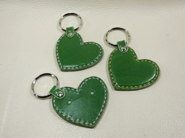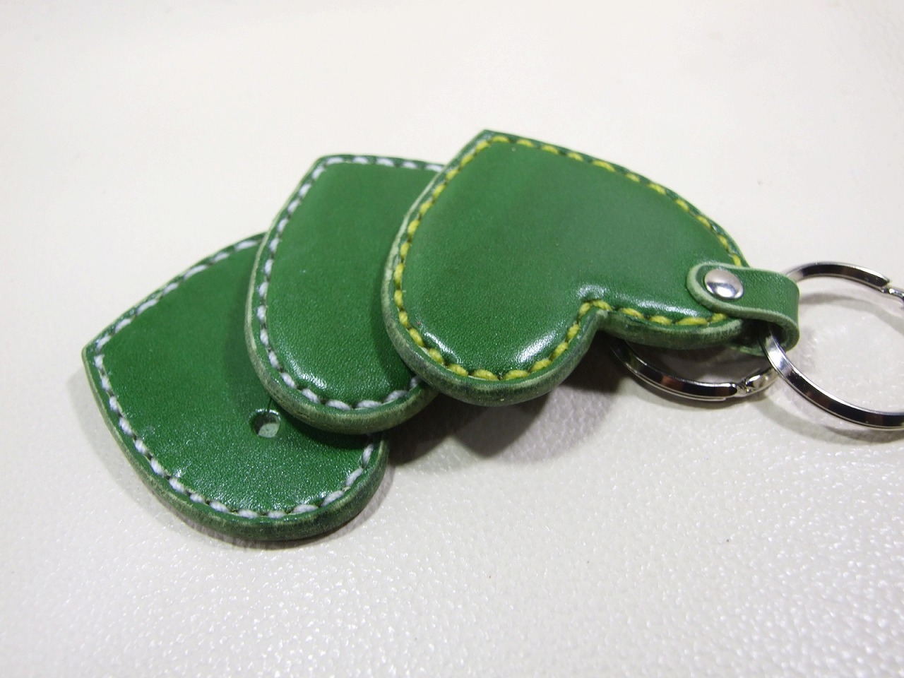 ルガトショルダーのパロットグリーンでハートのキーホルダー作りました。