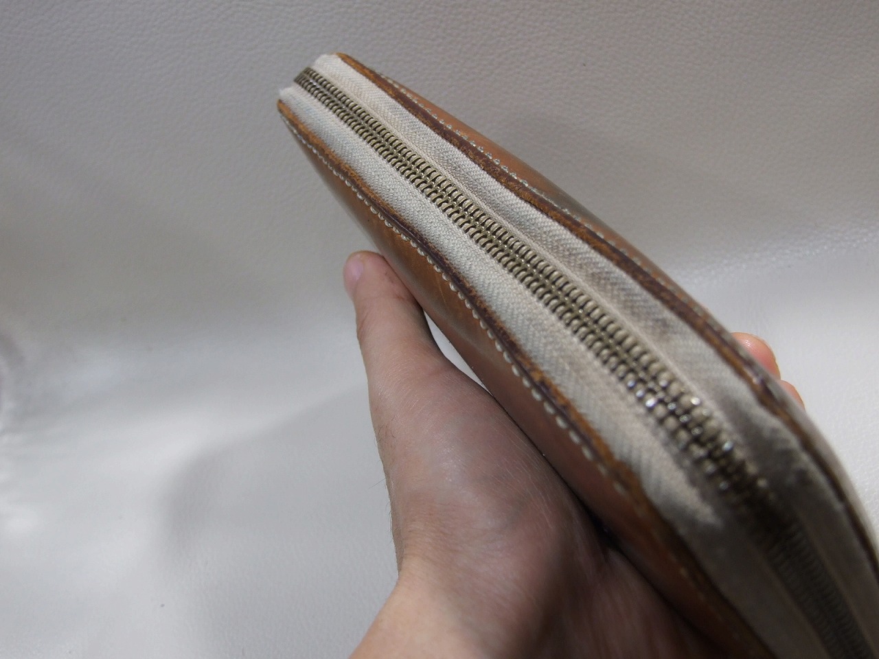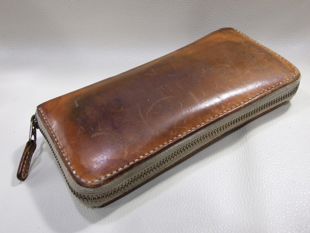 約13年前にお買い上げ頂いたナチュラルのファスナーロングウォレットです。