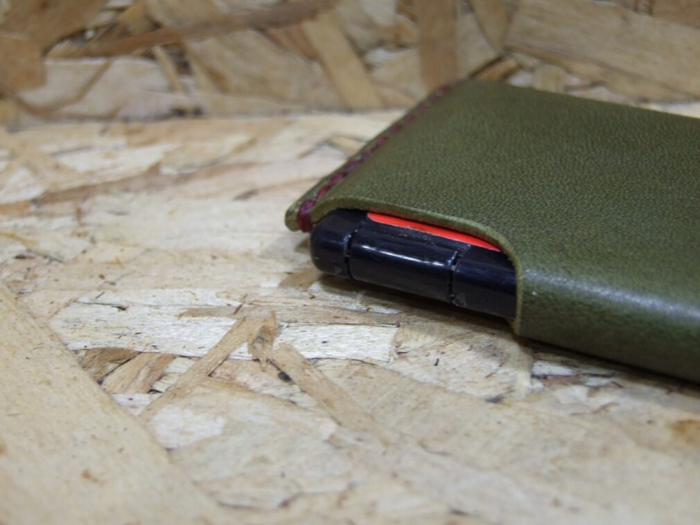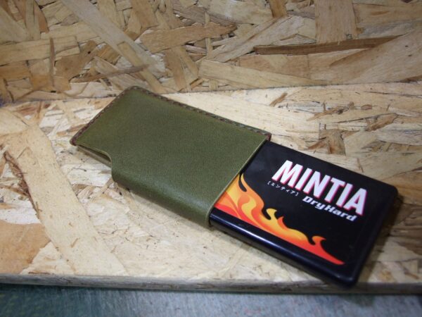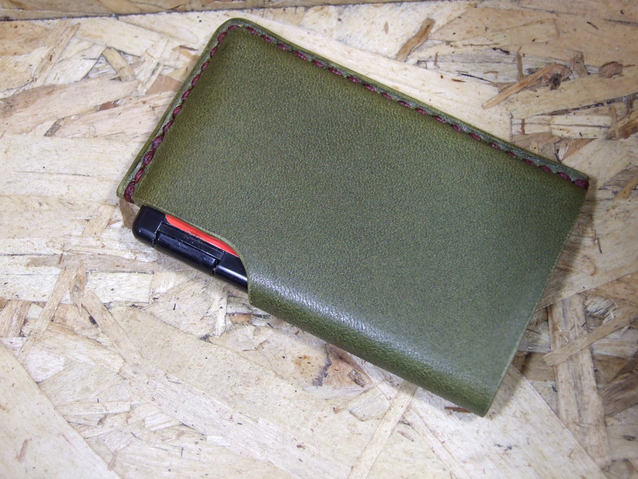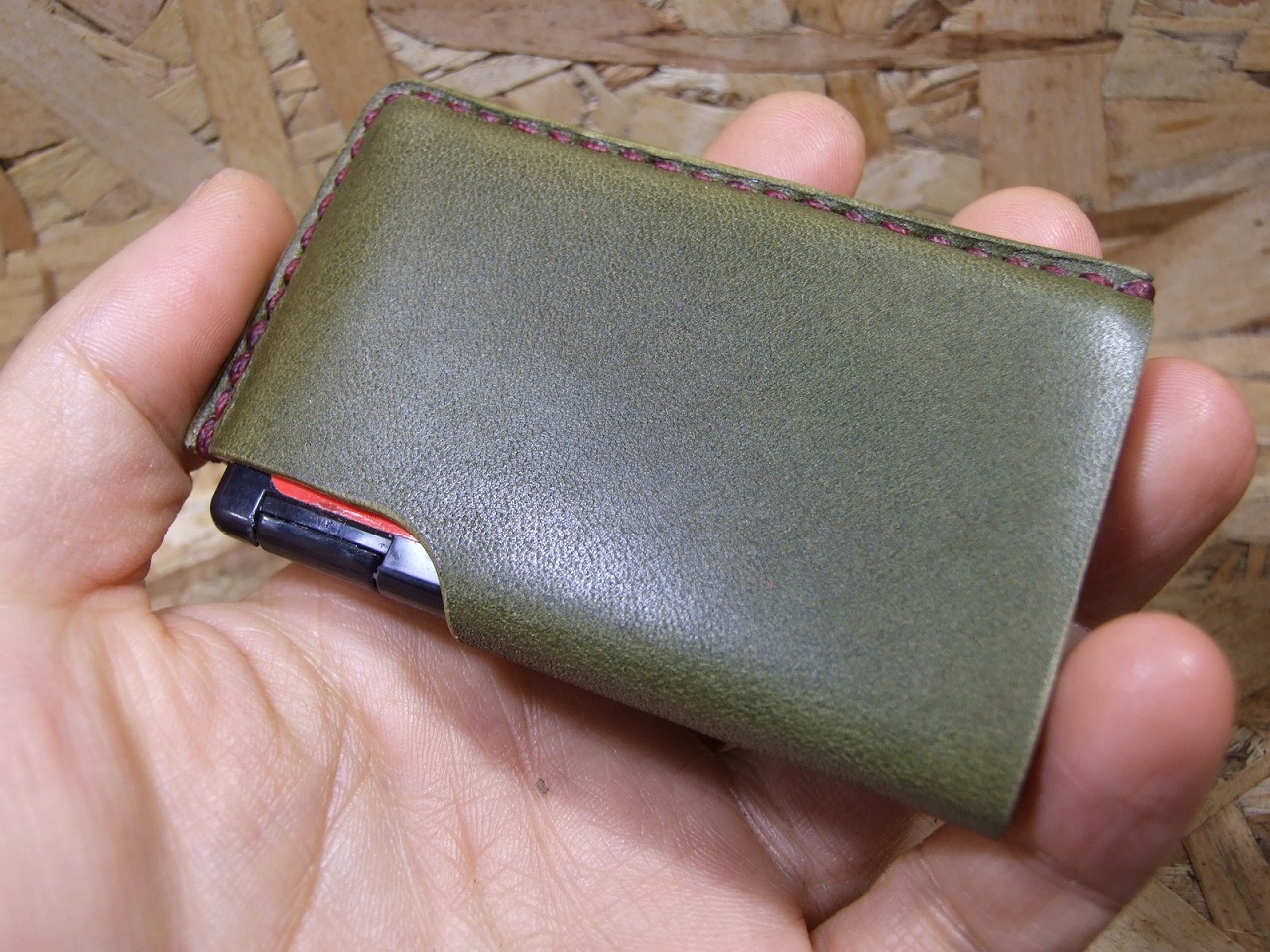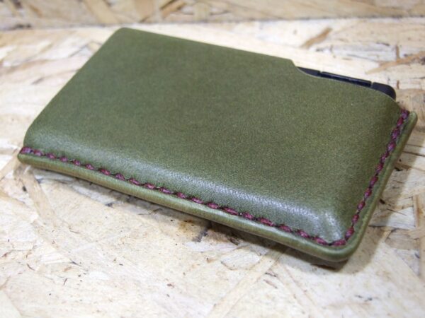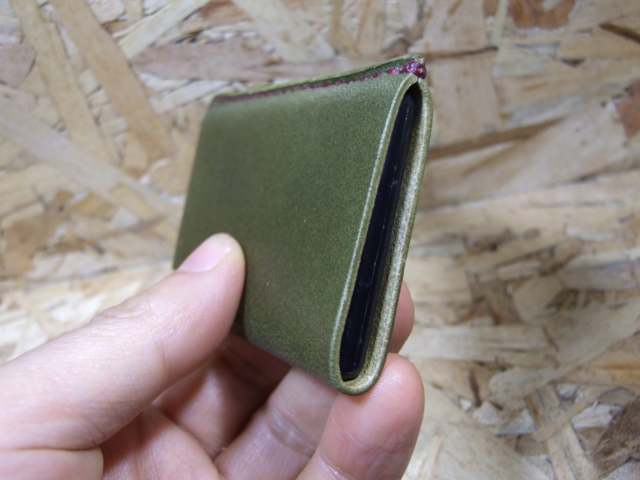 オイルプルアップのオリーブにエンジステッチで仕上げました。
