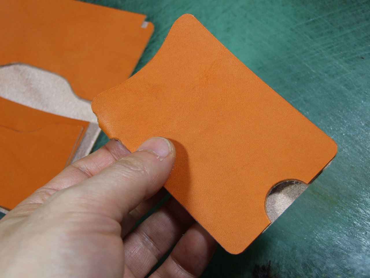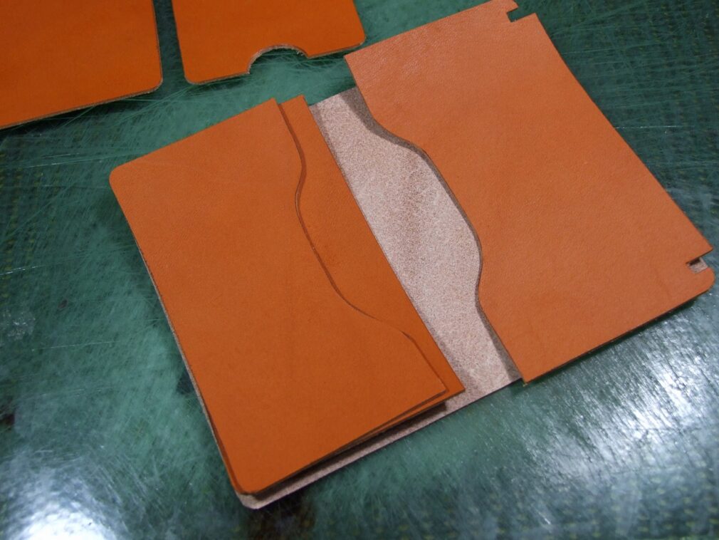 栃木レザーヌメのオレンジにオレンジステッチで仕上げていきます。