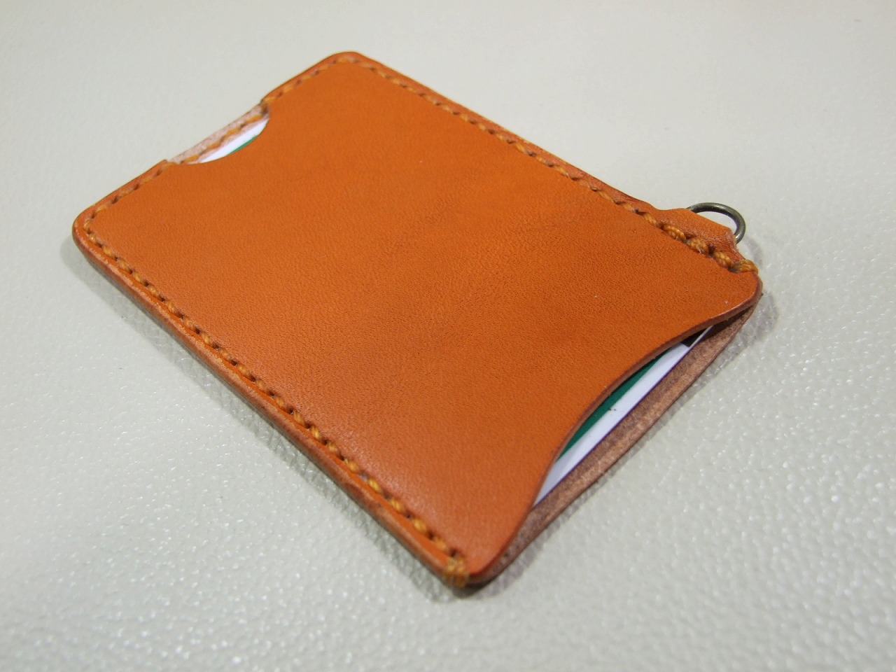 栃木レザーヌメのオレンジにオレンジステッチで仕上げました。
