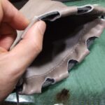 シボありの赤にサドルレザー黒を挟んで赤ステッチで仕上げました。