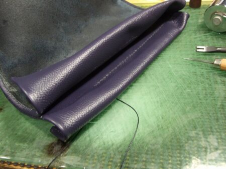 レザー巾着製作中 2026年1月13日 sin オーダー頂いたレザー巾着製作中です。 サンプルを基に微調整してネイビーブルーの1ミリ厚で作ってます。 縫い完了で穴を開けて紐を通したら完成です。 ...続きを読む