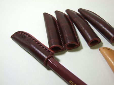 鉛筆キャップ 2019年4月16日 sin オーダー頂いた鉛筆キャップです。 三菱のHi-Uni用として サドルレザーナチュラル、黒、ネイビーでそれぞれ2つづつ作りました。 1.5mm厚の革で型紙の幅33 ...続きを読む
