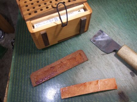 「magno」の木製ラジオの電池の蓋改 2025年12月9日 sin 10年前に依頼頂いた木製ラジオの電池の蓋が馴染んでいい味が出てました。 少しずれてたので0.2mm調整して2mm厚のサドルを貼り合わせてずれないようにしました。 ...続きを読む