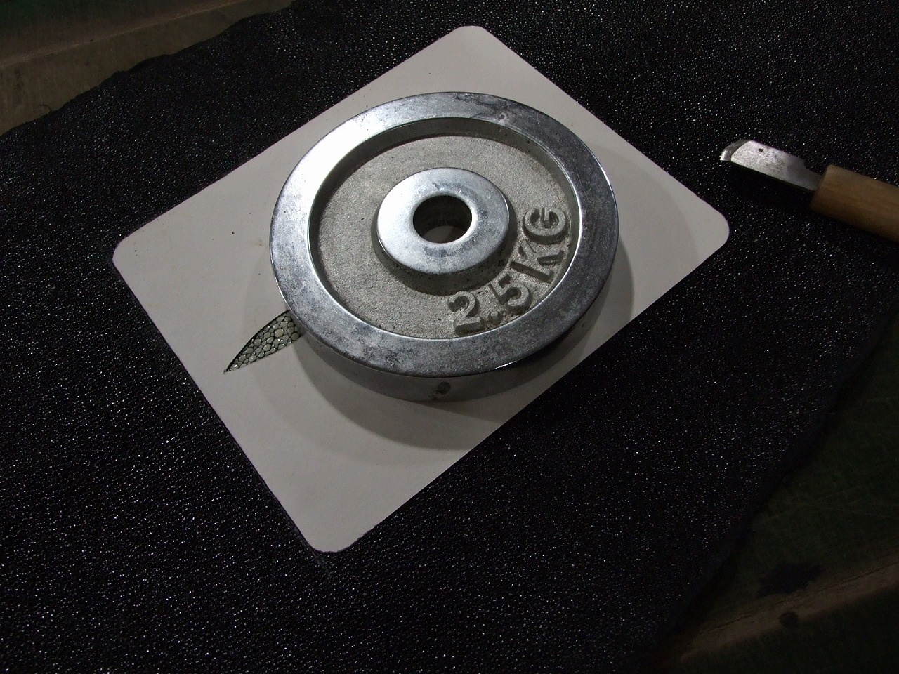 厚みがあるので薄めの床革をを貼って手持ち用の取手と両サイドにDカンを装着するので