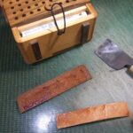 リメイクキーホルダー 2025年9月7日 sin リメイク依頼頂いたキーホルダーです。 金具(マグネット?)を外して新しいキーホルダーに組み込みました。 サドルレザーキャメルにベージュステッチで仕上げました。