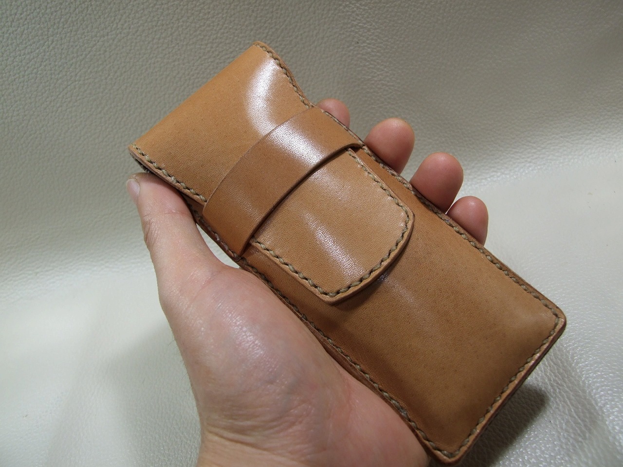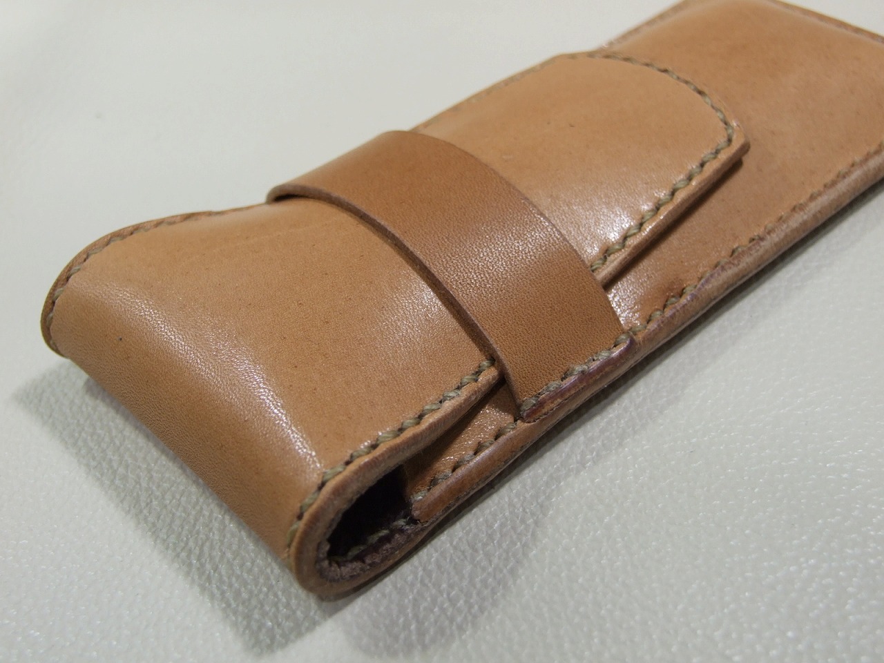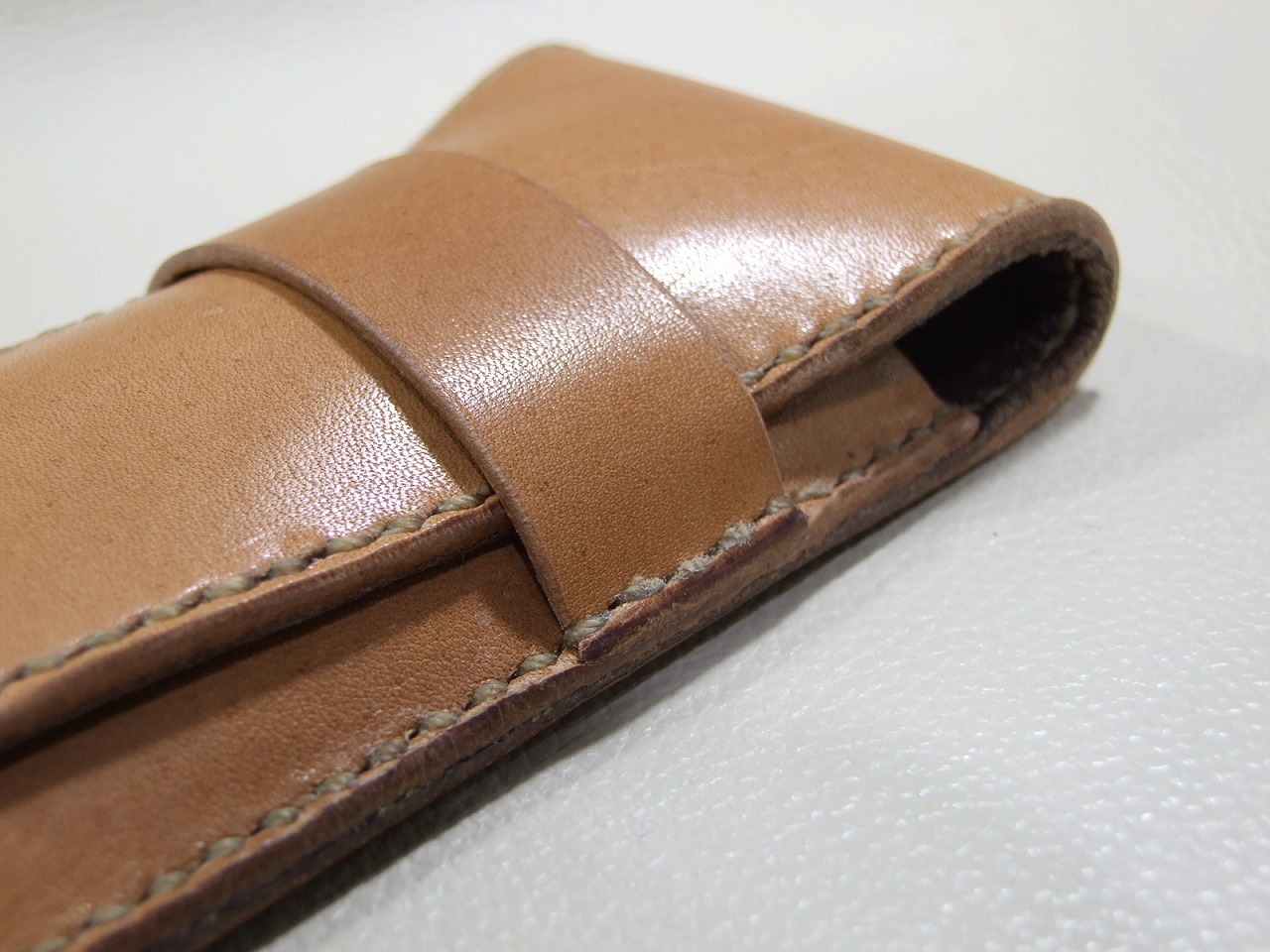 サドルレザーナチュラルにオイルを入れてベージュステッチで仕上げました。