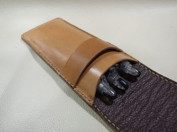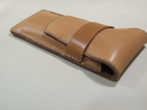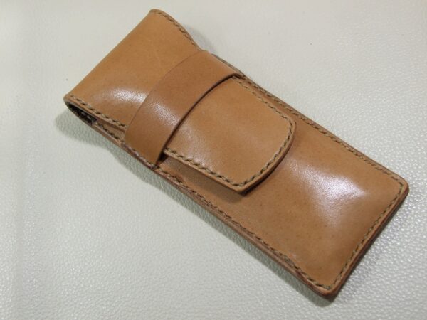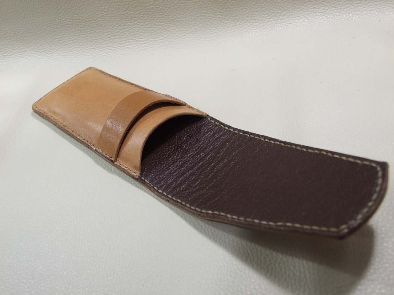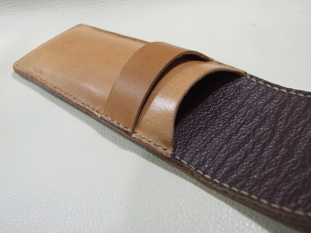 サドルレザーナチュラルにオイルを入れてベージュステッチで仕上げました。