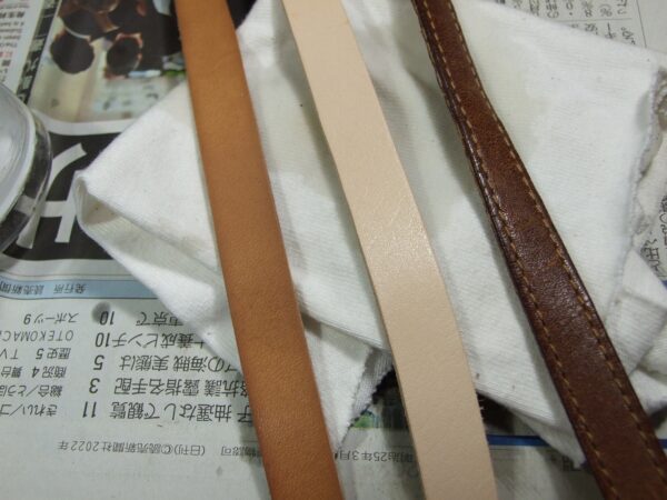 取手のサドルレザーに何度もオイルを入れて元々の取手の色に近づけます。